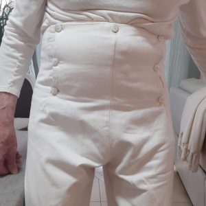 Ne portaient pas de culottes ceux qui portaient un pantalon, c’est-à-dire ceux qui travaillaient de leurs mains. Les sans-culottes s’opposent aux porteurs de culottes courtes et de bas de soie et répandent des usages démocratiques : ils se tutoient et s’appellent citoyens Plus sur Wikipédia ci-dessous ma culotte à petit pont qui est à vendre pour cause d’inactivité. (Coton: imitation casimir ou nankin !) A noter que la largeur de la culotte s’adapte avec une boucle !