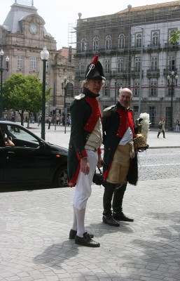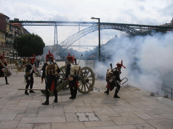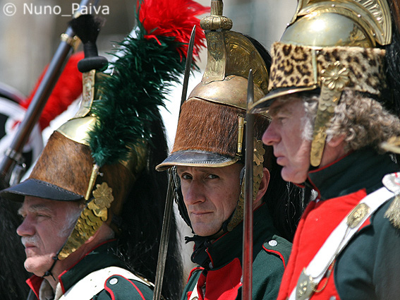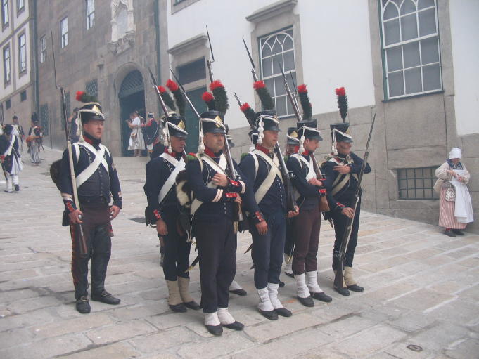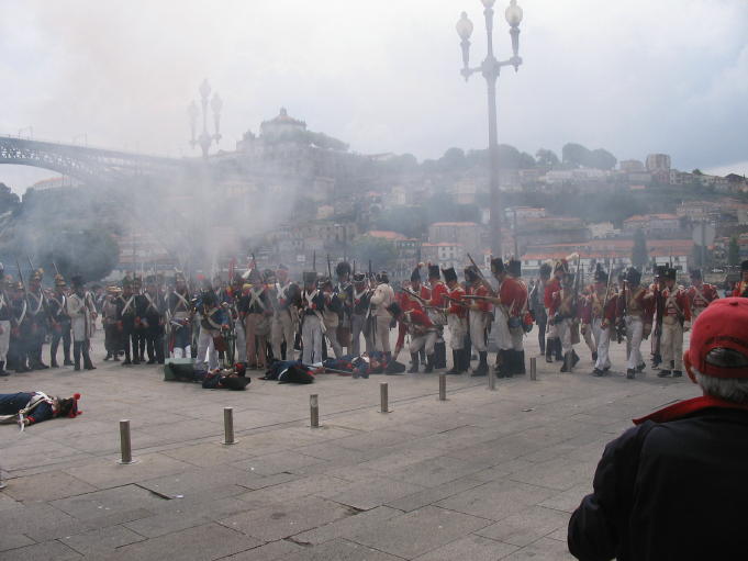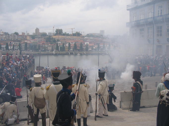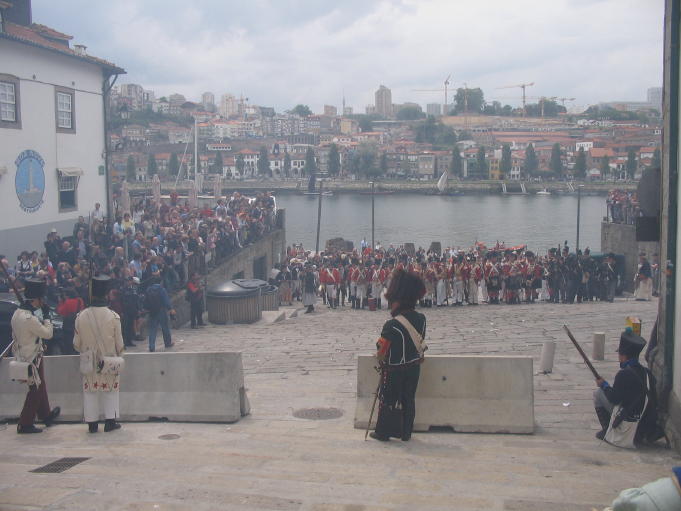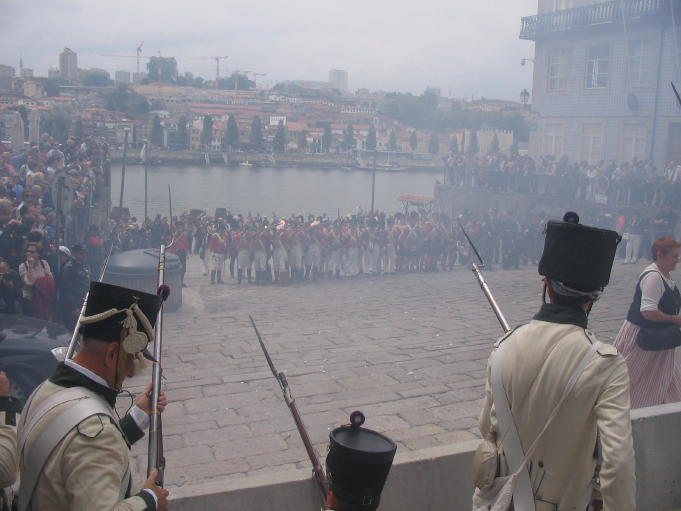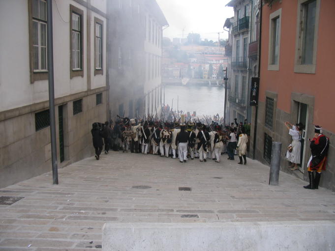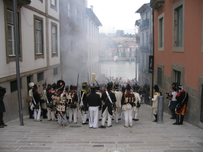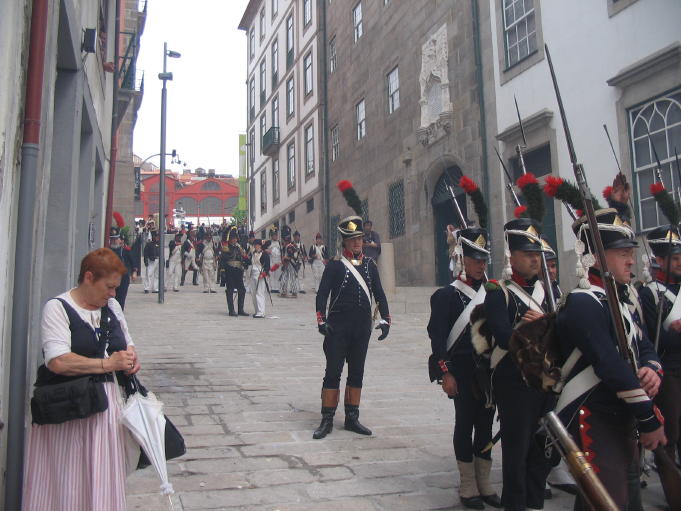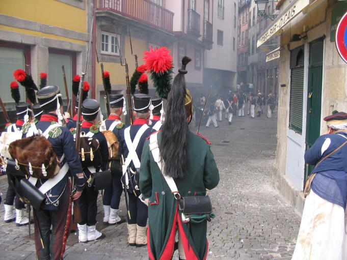 C’est à pied que nos 5 dragons ont participé aux 2 batailles dans le quartier touristique de la Ribeira. Vu le terrain, l’utilisation de chevaux n’était pas possible, nous servîmes en tant que protection de l’état-major et comme estafettes.