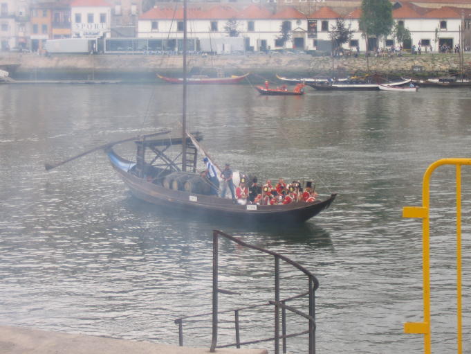 Les troupes luso-britanniques traversent le fleuve pour reprendre la ville. Au milieu de la gabare, les tonneaux de Porto!