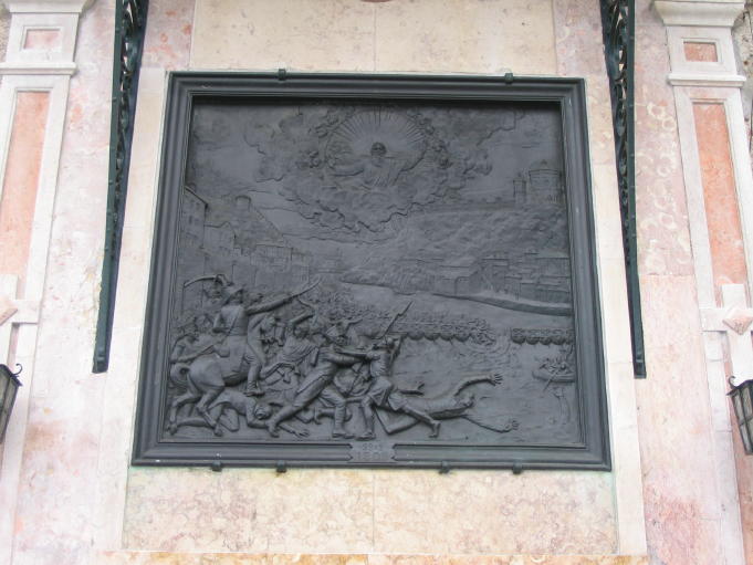 La plaque commémorative : En 1809, Porto fut la scène d’un désastre lorsque la population en fuite se précipita sur le Pont des Barques qui reliait les deux rives du fleuve, car l’armée napoléonienne était à l’entrée de la ville.