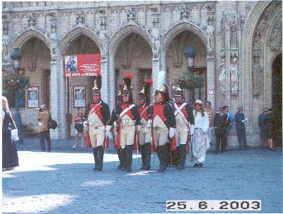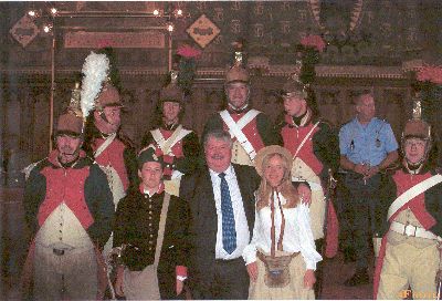 La grand-place de Bruxelles réoccupée par les dragons. La réception à l’Hôtel de ville. Le bourgmestre Freddy Thielemans entouré de nos dragons.