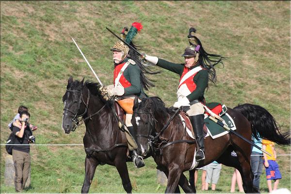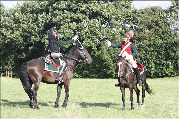 Démonstration à Waterloo (31-8-2013)Régulièrement, nos dragons assurent les animations estivales sur le site du champ de bataille.C’est sous le regard bienveillant du lion que nos dragons ont cloturé la saison 2013 des animations. La charge au galop. Un petit duel pour se faire plaisir ! A l’année prochaine !