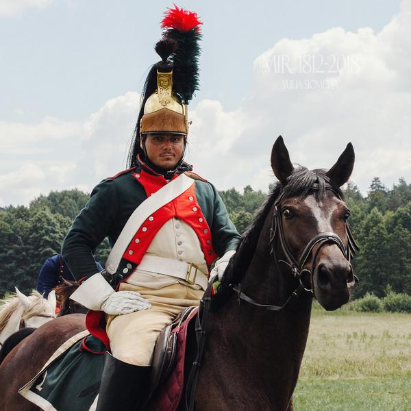 Reconstitution en Biélorussie (7-8 juillet 2018) La bataille de Mir est un affrontement qui a eu lieu le 10 juillet 1812, au début de la campagne de Russie. (wikipedia) Notre dragon “La Renverse” y est allé représenter le régiment Parmi les Cuirassiers du 7me régiment Tous nos remerciements aux photographes