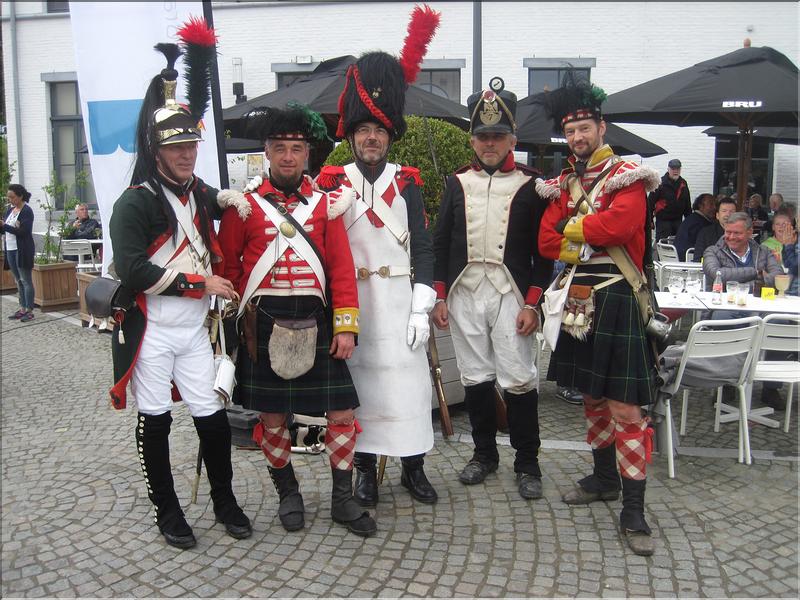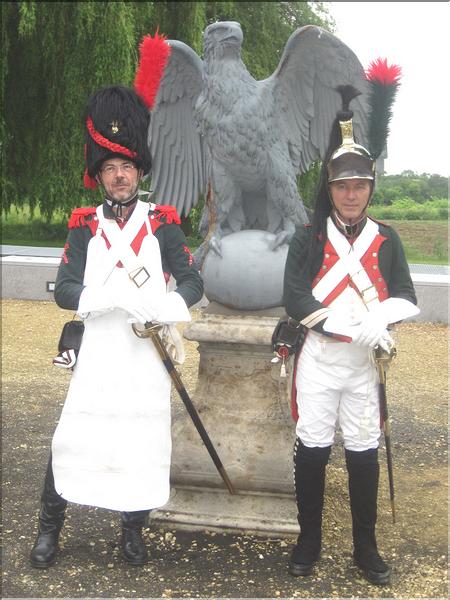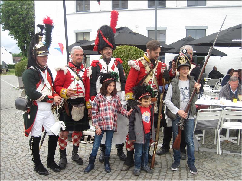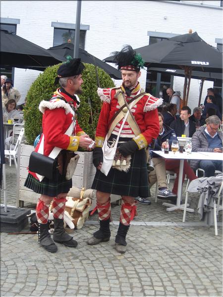 Note: Les 2 écossais reconstituent le 92me Rgt des Gordon Highlanders: Ce sont eux qui aux Quatre-Bras la veille de Waterloo permirent au Duc de Wellington de s’échapper. Leur officier voyant le Duc de Wellington poursuivi par la cavalerie française leur donna l’ordre “92nd Be down”. Les Highlanders se couchèrent par terre et Copenhague monté par Wellington put se tirer d’affaire en traversant leurs lignes.