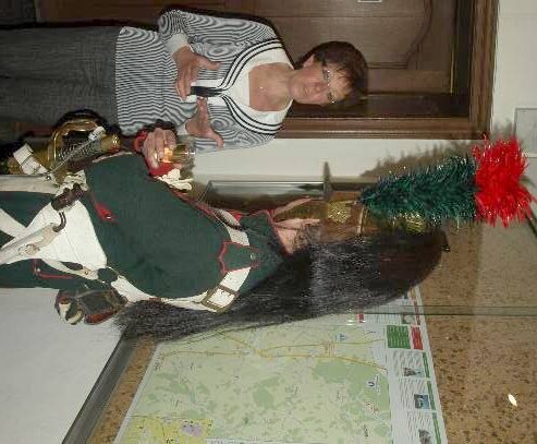 Mme Delange, présidente des Amis du musée Wellington en conversation avec notre Maréchal des logis.