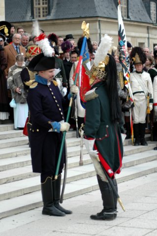 Sur le champ de bataille, sa place est près du commandant qui lui indique les ordres à transmettre.
