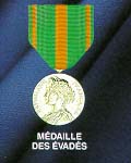 Créé en 1926 cette médaille commémore les actes ou les tentatives d’évasion accomplis par les prisonniers de guerre civils ou militaires. D’un ruban vert coupé de trois raies orange, il soutient une médaille à l’effigie de la république .