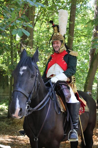 Le Genéral (Patrick Collart) Ancien commandant de peloton de l’escorte royale à cheval, Patrick reprend du service sous l’uniforme de Colonel des Dragons de la garde.Waterloo 2019: devant la tente de l’Empereur Septembre 2019 à Braine l’alleud