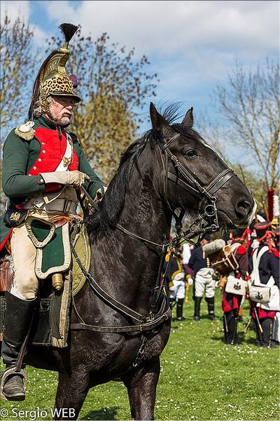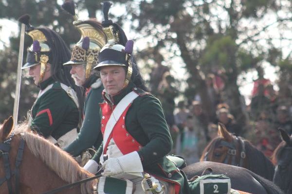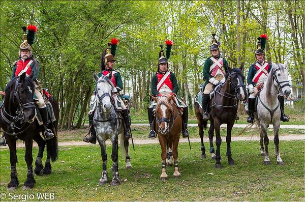 Pour ce bicentenaire, le Rgt combattait aux côtés du 1er Rgt de Lanciers de la Garde Impériale (Lanciers Polonais). Pour rappel, les lanciers sont également de la cavalerie de ligne c-à-d entre la cavalerie légère (Hussards et Chasseurs) et la cavalerie lourde (Cuirassiers et Grenadiers): Le rôle de la cavalerie de ligne est celui d’une cavalerie de combat.