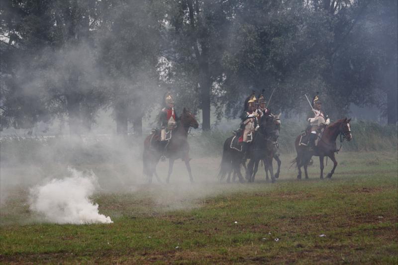 C’est sur un terrain détrempé comme à l’époque que nos dragons ont reconstitué le combat de Grouchy contre l’armée prussienne.